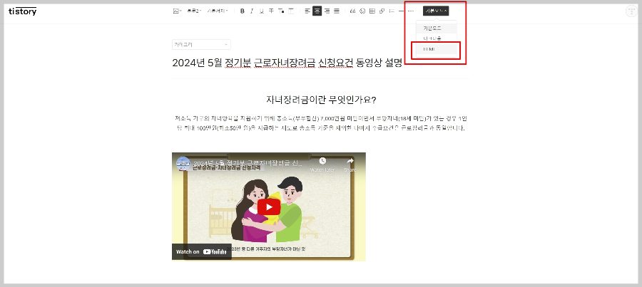 <iframe> 동영상소스 </iframe>가 보일 것이다.